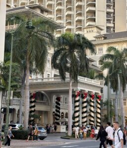 昨日はワイキキを歩きましたが、街やホテル、お店にはそれぞれ趣向を凝らしたツリーが飾られ、歩いているだけでも楽しいひと時でした。